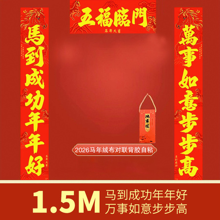 2026马年绒布对联背胶自粘1.5M-马到成功年年好,万事如意步步高