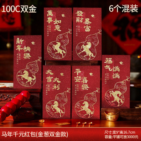 新款马年千元红包(金葱双金款)6个/包*10包