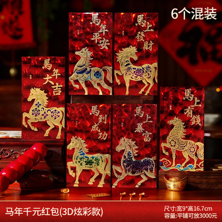 新款马年红包3D炫彩小马红包6个/包*10包