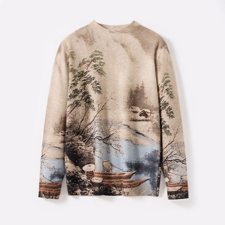 RifugioVo女士重磅100羊毛立体印花羊毛衫·驼色