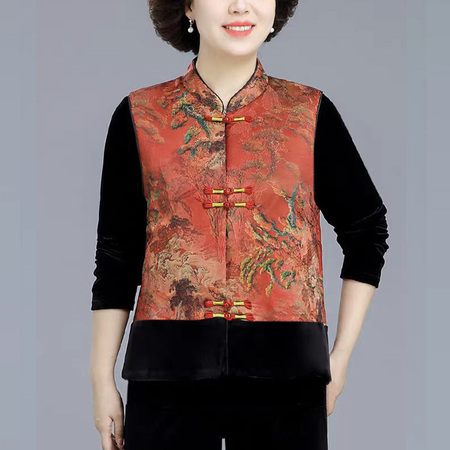 法薇姿丝绒提花撞色马甲·红色