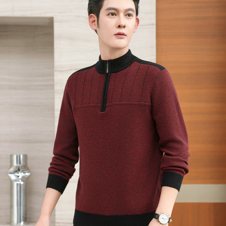 华家那男士绞花加厚100羊毛衫·紫红