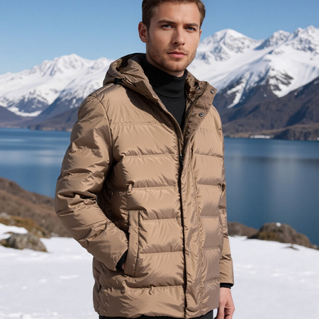 英国JANCYBONY男士压胶连帽羽绒服·咖