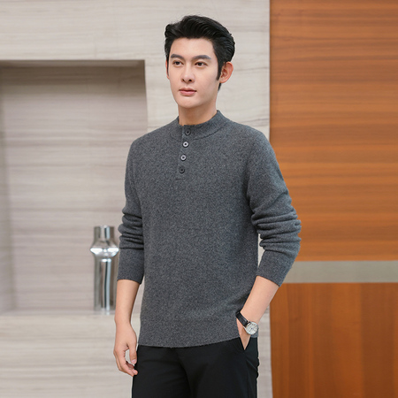 华家那男士亨利领加厚高原牦牛绒衫·灰